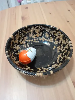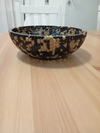 Elegante ciotola realizzata in resina con inglobati veri ceci e fagioli neri. - Materiale: Resina - Design: Mosaico nero e beige Pezzo unico artigianale Diametro 20cm altezza 7cm.