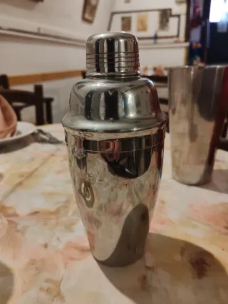 Set per cocktail composto da uno shaker, un mixing glass e un sifone per soda. - Shaker in metallo. - Mixing glass in metallo. - Sifone per soda rosso con dettagli in plastica.
