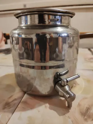 Contenitore in acciaio inox 18/10 con rubinetto. Ideale per conservare e servire bevande. - Capacità: 2,5 litri. - Materiale: Acciaio inox 18/10. - Dotato di rubinetto per un facile versamento.