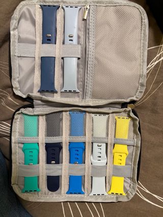 Pratico organizer per cinturini Apple Watch, ideale per tenere tutto in ordine. Include 6 cinturini aggiuntivi. - Organizer nero con chiusura a zip. - 6 cinturini inclusi.