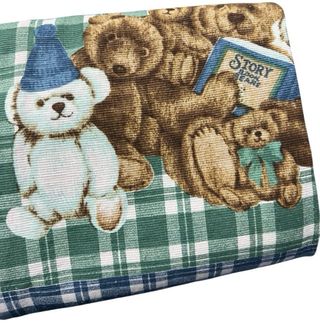 Copriletto vintage con una dolce stampa di orsetti su sfondo a quadri. - Design con orsetti e cappellino da festa. - Orsetto che legge un libro Story Book Bears. - Trama a quadri.