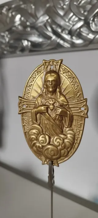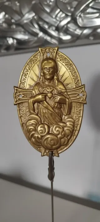 Antica targa in ottone con raffigurazione del Sacro Cuore di Gesù. 7x10 cm. In ottimissime condizioni mai usata