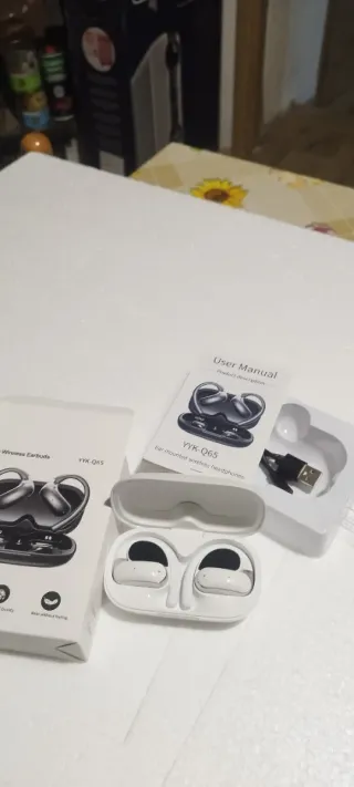 Mai usate. Acquistate su Amazon. Nuove, mai usate.Cuffie di alta qualità. Distanza di trasmissione: 10 metri Stile d'uso: auricolari in-ear Durata della batteria: ca. 60 ore Tempo di ricarica: circa 1,5 ore Porta di ricarica: TYPE-C Descrizione del prodotto: le cuffie wireless combinano un suono straordinario e funzioni di alimentazione mobile. Batteria integrata da 300 mAh, è possibile caricare il telefono cellulare in caso di emergenza in qualsiasi momento. Dotato di chip Bluetooth 5.4 per ottenere una sincronizzazione audio e video a bassa latenza, giochi e guardare film più piacevoli.