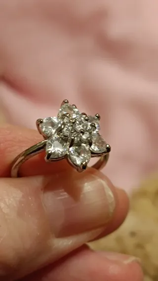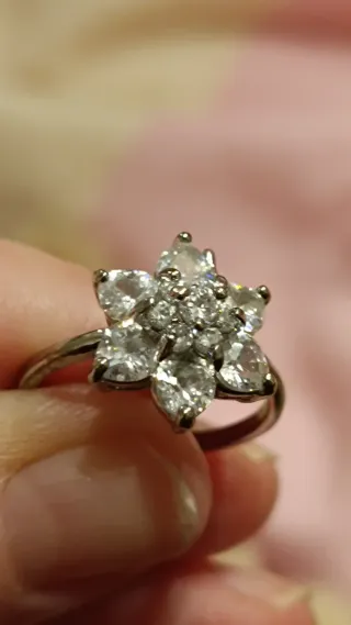Elegante anello con un design a fiore impreziosito da pietre scintillanti. - Design a fiore con pietre. - Montatura in metallo color argento.