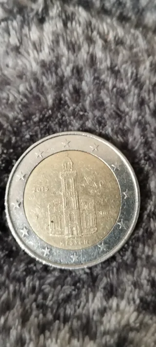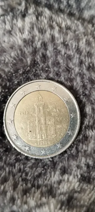 Moneta commemorativa da 2 euro. Anno: 2015 - Emissione: Germania - Regione: Hessen - Dritto: Chiesa di San Michele Arcangelo