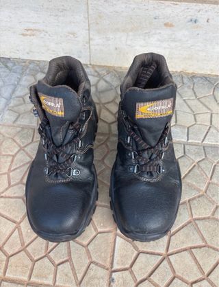Scarpe antinfortunistiche alte in pelle. - Chiusura con lacci. - Suola in gomma. - Punta rinforzata.