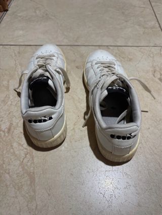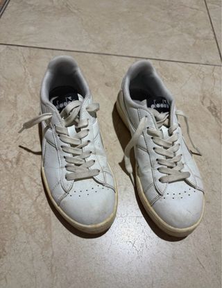 Sneakers Diadora in colore bianco, adatte sia per uomo che per donna. Un classico intramontabile per il tempo libero. - Tomaia in pelle sintetica. - Chiusura con lacci. - Suola in gomma.