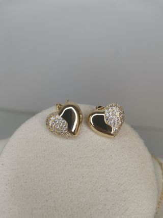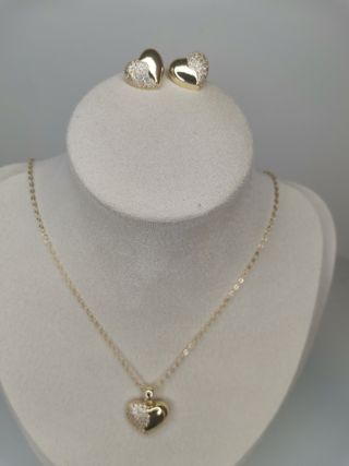 Set composto da collana e orecchini a forma di cuore. - Collana con pendente a cuore tempestato di strass. - Orecchini coordinati con design a cuore e strass.