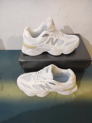 Scarpe New Balance modello 9060. - Tomaia in mesh e pelle. - Dettagli argentati. - Suola chunky.