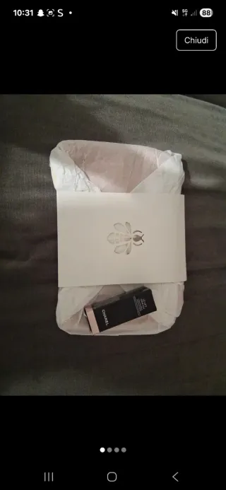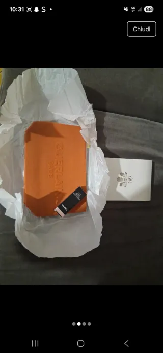 Elegante pochette Guerlain in un vivace color arancione. - Logo Guerlain Paris impresso. - in omaggio Include una piccola confezione di prodotto Chanel.