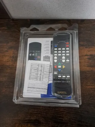 Telecomando universale Supertel, ideale per controllare diversi dispositivi. - Design ergonomico. - Pulsanti chiari e ben disposti. - Include manuale di istruzioni.