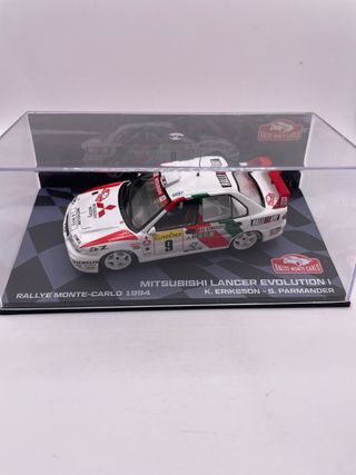 Modellino della Mitsubishi Lancer Evolution I, vincitrice del Rally Montecarlo nel 1994. - Scala 1:43. - Dettagli fedeli alla vettura da competizione. - Presenta sponsorizzazioni tipiche del rally. 15