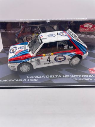 Modellino Lancia Delta HF Integrale, vincitrice del Rally Monte-Carlo 1992. - Scala 1:43 - Dettagli Martini Racing - Numero gara 4 - Equipaggio D. Auriol - B. Occelli 15