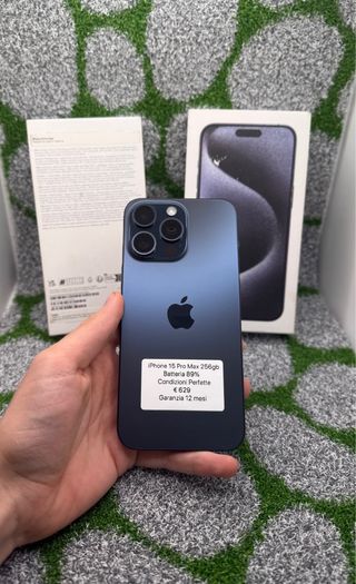 Vendo bellissimo iPhone 15 Pro Max 256gb Blu completo di scatola e filo originale. Sono un rivenditore, 12 mesi di garanzia sul buon funzionamento. Il dispositivo è pertettamente funzionante ed originale in ogni sua parte, pronto per essere utilizzato. Non ricondizionato. Funziona con qualsiasi sim fisica e virtuale. Il dispositivo si presenta in ottime condizioni sia dal punto di vista tecnico che estetico. Capacità massima della batteria al 89% Vedete il mio profilo e le mie recensioni, massima serieta! Vi prego di evitare offerte ridicole perché saranno subito cestinate, grazie. Per info non esitate a contattarmi!