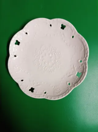 Elegante piattino in porcellana, perfetto per ogni occasione. - Design traforato con motivi floreali. - Bordo ondulato e decorato. - Ideale per piccoli snack o svuotatasche. Diametro cm 16