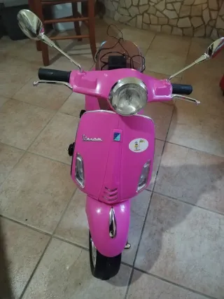 Bellissima Vespa primavera piaggio elettrica per bambina, perfetta per i più piccoli, mai usata. -potenza 12v. - Colore rosa vivace. - Design iconico ispirato alla Vespa. - Specchietti cromati. - Luci anteriori e posteriori. -fornita di stereo e suoni incorporati.