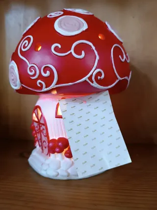 Deliziosa casetta decorativa a forma di fungo, perfetta per aggiungere un tocco magico al tuo Natale. - Illuminazione interna a LED. - Design a forma di fungo rosso e bianco. - Base bianca decorata. In offerta: da € 58.00 a € 29.00