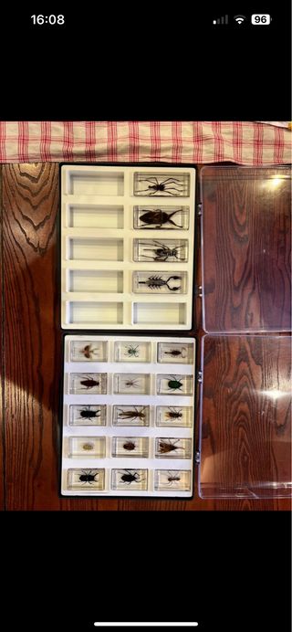 Bellissima collezione di insetti provenienti da tutto il mondo, conservati in teche trasparenti. - Insetti vari. - Teche singole per ogni esemplare. - Ideale per collezionisti o per scopi didattici. Piccoli difetti su entrambi i contenitori