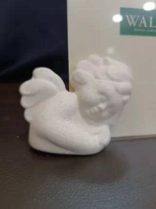 Elegante cornice portafoto con un dolce angelo decorativo. - Decorazione a forma di angelo bianco. - Logo WALD domus vivendi.
