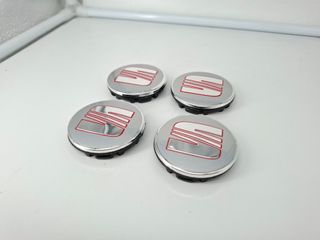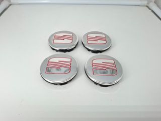 Set di 4 coprimozzi per Seat. - Diametro: 56mm. - Colore: Argento con logo Seat rosso.