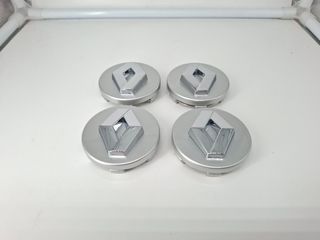 Set di 4 coprimozzi per Renault, nuovi e con diametro di 57mm. Presentano il logo Renault in rilievo. - Diametro: 57mm - Quantità: 4 pezzi - Condizione: Nuovi
