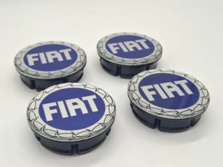Set di 4 coprimozzi per Fiat con diametro di 60mm. - Design elegante con logo Fiat. - Finitura cromata lucida.
