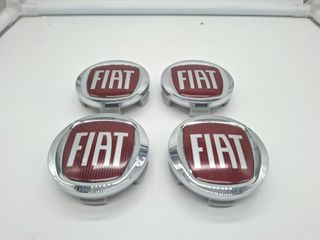 Set di 4 coprimozzi per Fiat con logo. - Diametro 50mm. - Nuovi.