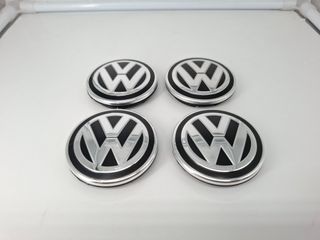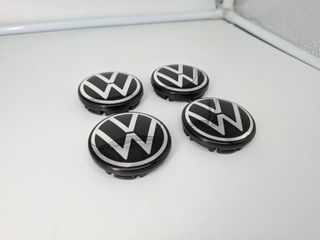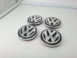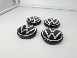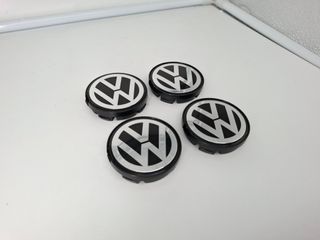 Set di 4 coprimozzi nuovi per cerchi Volkswagen. - Diametro: 56mm - Logo Volkswagen in rilievo - Finitura cromata e nera