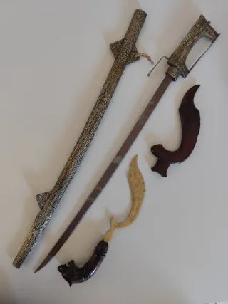 Lotto composto da due oggetti decorati con motivi etnici. - Motivi geometrici e floreali. - Finitura in metallo anticato.
