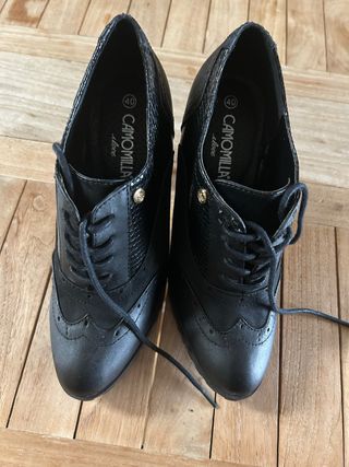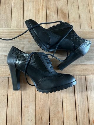 Eleganti scarpe con tacco, perfette per completare ogni outfit. - Design stringato brogue. - Dettagli in materiale effetto pitone. - Tacco robusto per un comfort duraturo. Vedi ultime foto per piccoli difetti dati dal tempo e non dall’usura, in quanto mai indossati.
