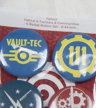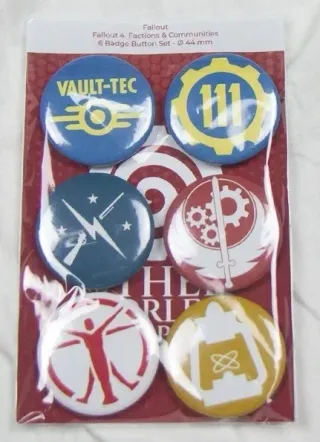 Set di 6 spille a tema Fallout 4: Factions & Communities. Ogni spilla ha un diametro di 44 mm. - Design ispirato al videogioco Fallout. - Include simboli delle diverse fazioni e comunità. - Perfetto per i fan del gioco.