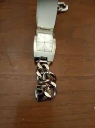 Elegante orologio da polso da donna Guess. - Cinturino rigido in metallo. - Quadrante quadrato con dettagli luminosi. - Logo Guess inciso sul quadrante e sul cinturino.