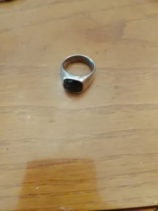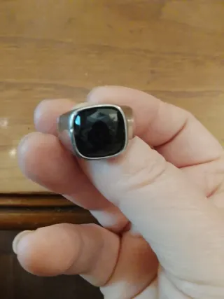 Elegante anello da uomo con una pietra centrale di colore nero. - Montatura in metallo color argento. - Design classico e raffinato.