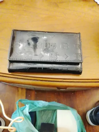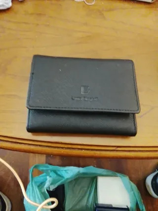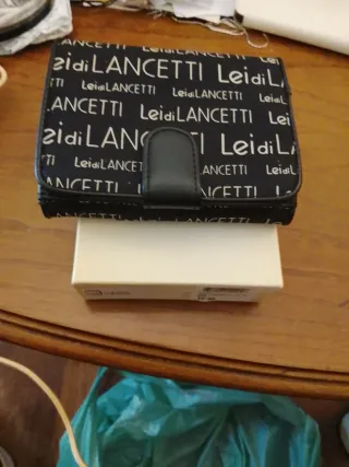 Portafoglio con logo Leidi Lancetti. - Fantasia con scritte. - Chiusura con bottone a pressione.