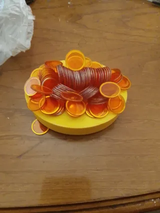 Gioco per la tombola con numeri magnetici. - Design rotondo e giallo vivace. - Include numeri magnetici per il gioco.
