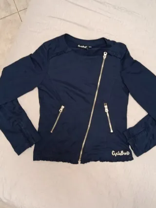 Giacca con zip asimmetrica e dettagli a contrasto. - Zip frontale diagonale. - Due tasche con zip. - Dettagli sulle spalle. - Logo ricamato sul fondo.