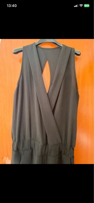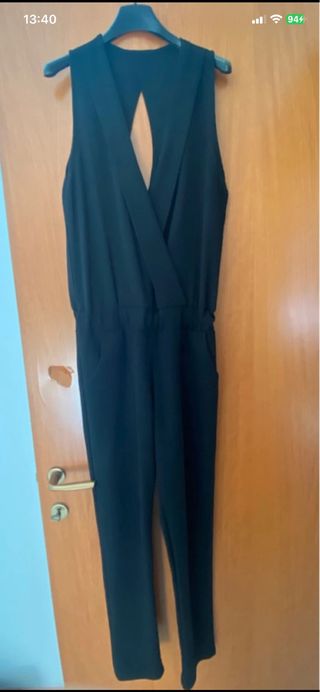 Elegante tuta intera da donna, perfetta per diverse occasioni. - Scollo a V incrociato. - Cut-out sulla schiena. - Vita elasticizzata. - Tasche laterali.