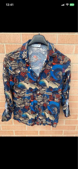 Camicia da donna con una fantasia vivace e colorata. Perfetta per aggiungere un tocco di stile unico al tuo guardaroba. - Design con stampa all-over. - Maniche lunghe. - Chiusura con bottoni.