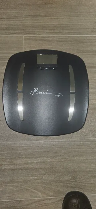 Bilancia pesapersona dal design moderno con finiture cromate. - Display digitale. - Superficie in vetro temperato nero. - Design elegante Baci Milano.