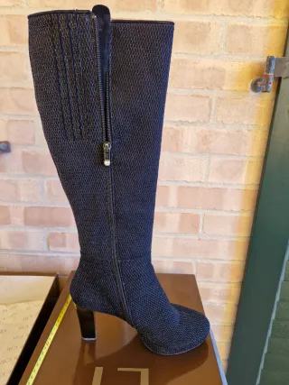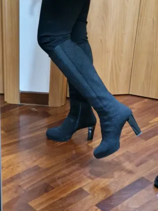 Eleganti stivali da donna. - Materiale glitterato. - in vera pelle,con montone la parte del piede - Tacco largo e plateau.