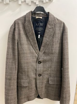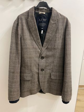 Elegante blazer de Armani Jeans, perfecto para un look sofisticado. - Confeccionado en lana. - Diseño a cuadros en tonos marrones y grises. - Cierre de dos botones.