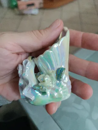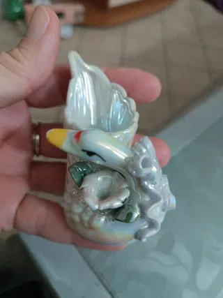 Elegante porta candela in ceramica a forma di cigno. - Design raffinato con dettagli floreali. - Finitura iridescente che riflette la luce.