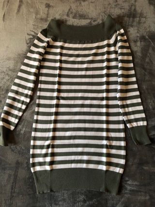 - Abito con maniche lunghe con righe orizzontali bianche e verdi. - Il collo è ampio e scollato. - Brand style benetton - Manca l’etichetta interna, ma veste una taglia S - Misto cotone, ideale indossato in autunno o primavera - Abito in lana senza maniche grigio e bianco. - Collo ampio - Brand Susy mix - Taglia S - Abito invernale grigio con righe orizzontali nere e scritta argentata - Maniche tre quarti - Inserto di pizzo lato schiena - Veste una taglia S Vendo il set per inutilizzo Ottime le condizioni