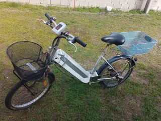 Bici elettrica grigia con cestino