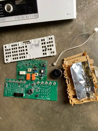 Scheda elettronica per lavatrice Whirpool 3Dry da 8Kg. L'articolo non è stato testato. - Componenti elettronici visibili. - Involucro in plastica beige. - Dettagli in alluminio. Non garantisco il funzionamento.No reso. Spedisco