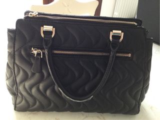 Elegante borsa Guess di colore nero. - Design trapuntato. - Chiusura con zip. - Tasche interne. - Dettagli metallici dorati.