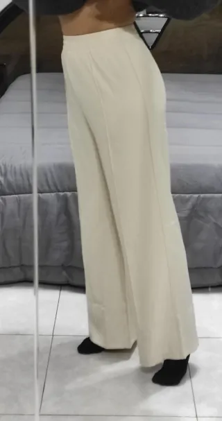 Pantaloni eleganti da donna. - Vita alta. - Gamba larga. - Tessuto morbido.