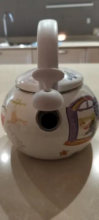 Elegante teiera con un vivace decoro floreale e farfalle. Il manico è in plastica per una presa comoda. - Design floreale colorato - Manico in plastica Per piano a induzione