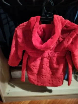 Morbida vestaglia per bambina in pile rosso. - Maniche lunghe. - Due tasche frontali. - Cintura in vita. - Misura 9/12