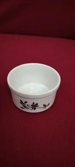 Set di ciotoline in porcellana, perfette per servire salse, condimenti o piccoli snack. Il decoro floreale aggiunge un tocco di eleganza. - Design con motivo floreale viola e oro. - Materiale: porcellana resistente.